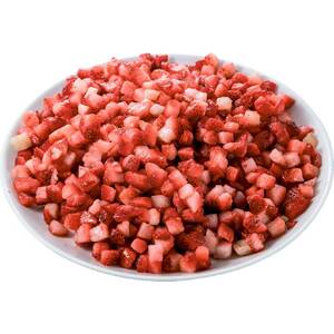 モロッコ産いちご使用。適度に熟したいちごのヘタを取り、ダイスカットしました。そのままヨーグルトやアイスクリームに混ぜる等、いろいろなメニューにお使いいただけます。