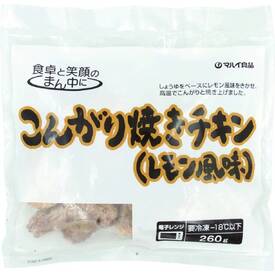 若鶏手羽元(タイ産)を使用。しょうゆをベースにレモン風味をきかせ、こんがりと焼きあげました。食べやすいよう、骨に沿って切れ目が入っています。