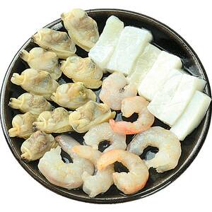 いか・あさり(中国産)、えび(インド・インドネシア産)の3種類をミックス。50gの使い切りタイプです。加熱調理用。