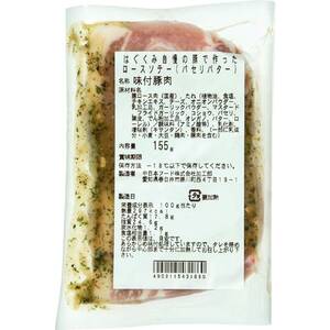 はぐくみ自慢の豚ロース肉(国産)を4mm厚にカットし、パセリバターのたれで味付しました。
