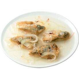 ひと口大にカットしたメアジ(ベトナム産)を粉付けして米油で揚げ、国産玉ねぎ、ニンジンと一緒に調味酢に漬込み氷温熟成しました。まろやかな酸味の南蛮漬けです。