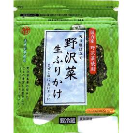 天日塩で仕込み、細かく刻んだ国産野沢菜塩漬に白ごまを混ぜ、風味豊かな生ふりかけに仕上げました。シャキシャキとした食感をお楽しみいただけます。混ぜごはんのほか、卵焼きやパスタ、マヨネーズとあわせてタルタルソース風等アレンジも楽しめます。