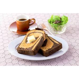 コーヒーの生地にブラックココアをあわせた、二色のほろ苦い大人のブレッドです。自然解凍後、トースター等で温めてお召しあがりください。長さ約17.5cm。