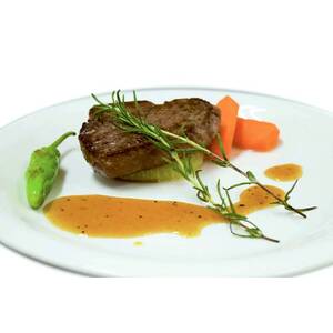 フレンチの名店「ラ・ロシェル」坂井宏行シェフ監修のステーキソースです。お肉によくあう本醸造醤油をベースに、風味豊かな赤ワインとデミグラスソース、たまねぎとりんごピューレの甘みを加え、白トリュフの芳醇な香りをきかせた上品な味わいに仕上げました。