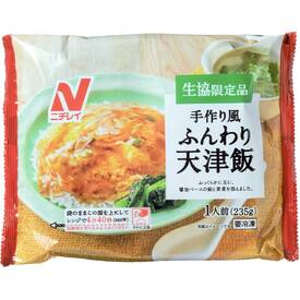 グリンピース、たけのこ、にんじん、かに風味かまぼこ、かに、しいたけ入りのふっくらしたかに玉に、醤油ベースの餡とこまつなを添えました。トレイのままレンジ調理できます。生協限定商品。トレイサイズ17.2×17.2×4.6cm