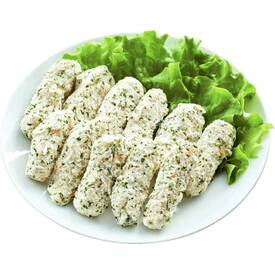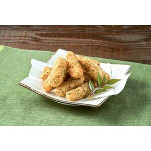 イカ(ペルー・チリ産)を使用。食べやすいサイズにカットしたいかにあおさ粉を混ぜたパン粉をつけました。粗めの焙焼パン粉を使用し、食感と香ばしさを出しています。