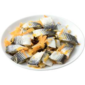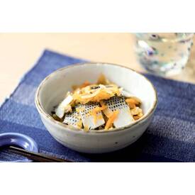 このしろ(伊勢湾産)を酢じめし、柚子と数の子で和えました。生姜、人参、きくらげ入り。