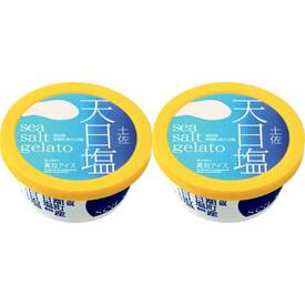 高知県黒潮町産天日塩を使用。土佐湾の海水を太陽の光と風だけで乾燥させてつくられる「天日塩」を使用したジェラートです。夏場で約1ヶ月間、冬場で約2ヶ月間もの期間、毎日攪拌作業を続けてじっくりと乾燥させてつくられる天日塩は、太平洋の恵みそのものです。土佐の海と空をイメージしたきれいなブルーも印象的です。アイスミルク規格。