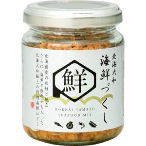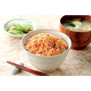 北海道産秋鮭、帆立、えび、数の子の4種を使った海鮮フレークです。ほんのりニンニクをきかせ、輪刻みの赤唐辛子で味を締めました。温かいご飯によくあいます。おにぎりや、パスタの具にもどうぞ。