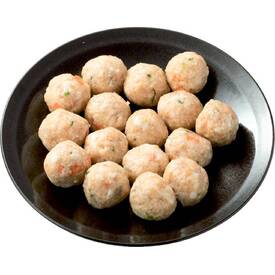 鶏肉(国産)にもちを配合しました。にんじん、ごぼう、たまねぎ、ねぎ、おろししょうが入り。柔らかな食感でお子様からご年配の方まで食べやすい鶏だんごです。鍋の具材等にどうぞ。