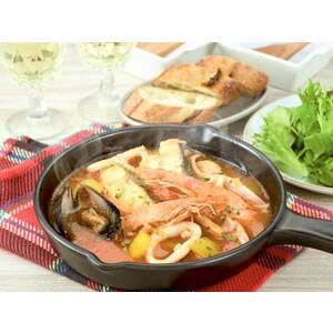 真だら・マツイカ(アメリカ産)、海老(エクアドル産)、ムール貝(チリ産)の4種の魚介と、たっぷりのトマトとねぎをじっくり煮込んだブイヤベースをセットしました。具材をオリーブオイルで炒めて、ソースと煮込むだけで、Le Rireの味をご家庭で簡単にお召しあがりいただけます。