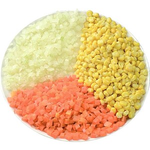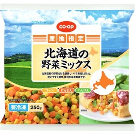 • 北海道産とうもろこし40%・にんじん30%・たまねぎ30%をミックスしました。チャーハンやシチュー、料理の付けあわせなどにどうぞ。