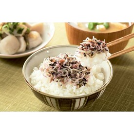 • 国産いわしの稚魚を使用したちりめんに、カリカリ梅、ごま、しそ、わかめを混ぜあわせました。ふりかけや混ぜご飯、おにぎり、お茶漬けにどうぞ。1パック(44g)あたりカルシウム182mg含有。