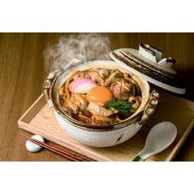 • 国産小麦を使用した生麺と、赤味噌を使用した煮込みそがセットになったみそ煮込うどんです。煮込んでも歯ごたえの良い麺と味わいが深い味噌スープがよくあいます。長ねぎ、油揚げ、鶏肉等のお好みの具材を入れてお召しあがりください。