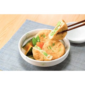 • 北海道産えだまめ・にんじん・こんぶ、国産大豆の豆乳を使用。冷凍のまま、好みのおだしで煮るだけで、枝豆の甘み豊かながんもどきの煮物が味わえます。油抜き不要。煮物やおでんにもどうぞ。
