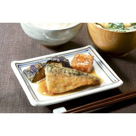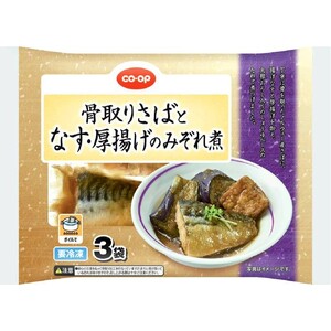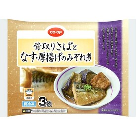 • 丁寧に骨を取ったノルウェー産さばに、揚げなすと厚揚げを加え、大根おろし入りのしょうゆベースのたれで煮つけました。