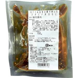 はぐくみ自慢の豚肉(国産)を使い、醤油ベースににんにく、ごま、りんご果汁等を加えた甘辛いタレで味付けしました。解凍後、キャベツや玉ねぎ等お好みの野菜と一緒に炒めてお召しあがりください。