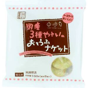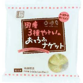 国産大豆を使用の豆腐生地に、3種の国産野菜(たまねぎ、えだまめ、にんじん)を練りこみました。トースターまたはレンジで加熱するだけの簡単調理なので、スナック感覚で手軽に野菜を摂取できます。
