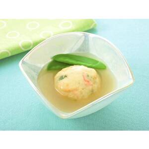 魚肉すり身、国産たけのこ、山芋とろろ、玉ねぎ、菜の花、人参、桜えびを使用。たけのこは一度煮込み、薄味をつけることで風味を増しています。あんはダシ感を強く感じるように、白だしベースに昆布、カツオのエキスをブレンドし、味に深みを出しました。椀ものとしてもう一品欲しい時に便利です。