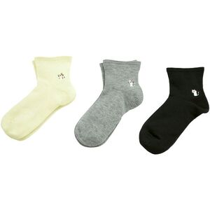 口ゴムゆったりねこ柄刺繍ソックス 3色組