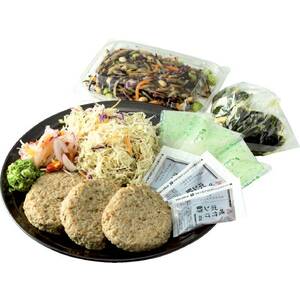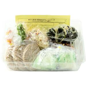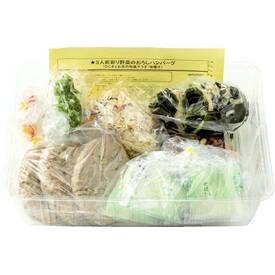 ハンバーグ、キャベツミックス(キャベツ・レッドキャベツ・人参千切り)、大根おろし、味付ぽん酢、レッドオニオン、小ねぎ、赤ピーマン、黄ピーマン、ひじきとお豆の和風サラダ、味噌汁用具材(わかめ・玉ねぎ・油揚げ・だし)のセットです。セット内容 ハンバーグ:3個 野菜:180g(キャベツ・レッドオニオン・人参・レッドキャベツ・小ねぎ・赤ピーマン・黄ピーマン) 大根おろし:3袋 味付ぽん酢:3袋 ひじきとお豆の和風サラダ:180g 味噌汁用具材:105g(わかめ・玉ねぎ・油揚げ・だし) 調理時間目安約10分 ※味噌はご用意ください