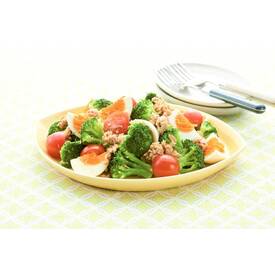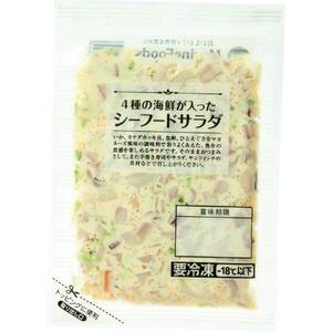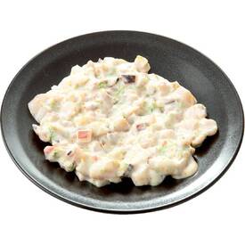 いか(チリ産)、カナダホッキ貝、数の子(ノルウェー又はデンマーク又はイギリス産)、ひとえぐさをマヨネーズ風味の調味料で彩りよくあえたサラダです。魚介の食感が楽しめます。そのまま食べるほか、手巻き寿司やサンドイッチ等の具材にもどうぞ。