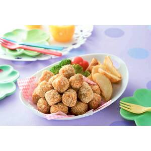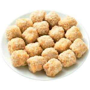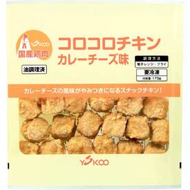 鶏肉(国産)を使い、チーズが入ったカレー味のスナックチキンです。食感の軽い衣と、カレーの風味とチーズの味わいが特徴です。ひと口サイズで、お弁当の隙間埋めにも便利です。