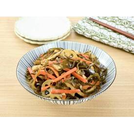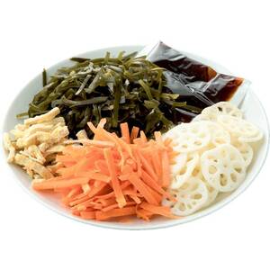日高昆布、れんこん、人参、きざみあげ、和風調味料のセットです。セット内容 日高昆布:90g 野菜:130g(れんこん・人参) きざみあげ:30g 和風調味料:1袋 調理時間目安約10分