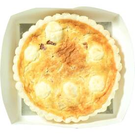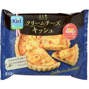 フランス産のKiriクリームチーズ、ベーコン等を使用した、チーズのコクが味わえるキッシュです。電子レンジ調理でサクッと仕上がる専用トレー入り。直径約14cm、高さ約3.5cm。