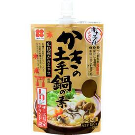 広島県産かきのエキスを使用し、かきの風味と旨みをいかした、広島の郷土料理が手軽に味わえる鍋の素です。白みそベースに豆みそを加えることで、まろやかさにコクをプラスしました。ザ・広島ブランド認定。キャップ付きパウチタイプ。