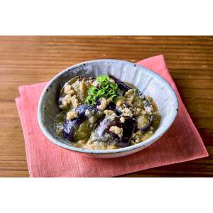揚げなすに坦々胡麻だれをあわせました。鶏そぼろ入りで食べごたえのある一品です。温めても冷たいままでも美味しく召しあがれます。