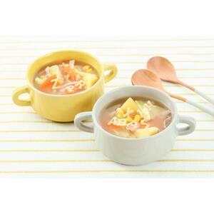 アルファベットの形をしたマカロニ入りのコンソメスープです。手軽に野菜も摂れる、どこか懐かしい味わいです。セット内容 ベーコン:50g 野菜:190g(玉ねぎ・キャベツ・じゃがいも・人参・コーン) アルファベットマカロニ:10g チキンコンソメ:4.5g×2 調理時間目安約15分