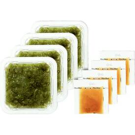 宮城県産のめかぶを食べやすい細切りに仕上げ、まろやかなかつお風味のタレをセットしました。解凍後、別添のタレか酢じょうゆ、お好みのドレッシング等をかけてお召しあがりください。ごはんにかけたり、みそ汁、めん類にもどうぞ。