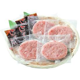 きはだまぐろ、めばちまぐろを使用。旨みのあるまぐろの赤身のたたき身を、使いやすいようまるい形に加工しました。お子様でもお召しあがりいただけるような、まろやかな風味のタレ付きです。
