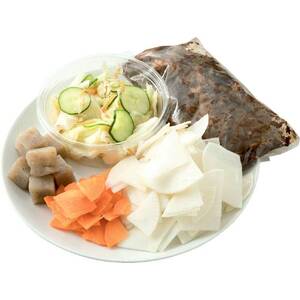 国産豚もつを使用。もつ味噌和え、野菜(大根・人参)、こんにゃく、キャベツ和えをセットしました。セット内容 もつ味噌和え:230g 野菜:150g(大根・人参) こんにゃく:60g おつまみキャベツ:120g 調理時間目安約15分 ※ごま油はご用意ください