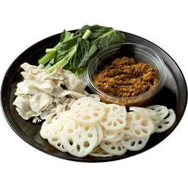 加熱済み豚肉、野菜(蓮根・小松菜)、カレーベースをセットしました。セット内容 豚肉:35g 野菜:155g(蓮根・小松菜) カレーベース:130g 調理時間目安約5分