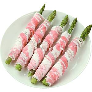アスパラガスを、1本ずつ豚バラ肉(スペイン産)で巻きあげました。
