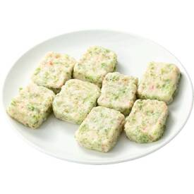 いとよりだいのすり身を使用。かにかまとあおさの風味がよくあいます。えだまめ、たまねぎ入り。おつまみやおかずにどうぞ。