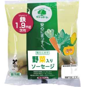 豚肉、鶏肉、野菜(かぼちゃ・とうもろこし・にんじん・ほうれん草)を使用。1パック(62g)あたり鉄1.9mg。