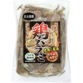 鶏ハラミ(国産)を使用。塩と鶏の旨みをベースに、香味野菜を加えた風味豊かな炭火焼風のたれで味付けしました。解凍後、フライパンやホットプレート等で焼いてお召しあがりください。