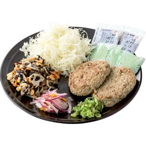 ハンバーグ、キャベツ、大根おろし、ぽん酢、おろし用野菜(紫玉ねぎ・黄ピーマン・赤ピーマン)、小ねぎ、大豆の五目煮風のセットです。セット内容 ハンバーグ:2枚 野菜:106g(キャベツ・紫玉ねぎ・黄ピーマン・赤ピーマン・小ねぎ) 大豆の五目煮風:120g 大根おろし:2袋 ぽん酢:2袋 調理時間目安約10分