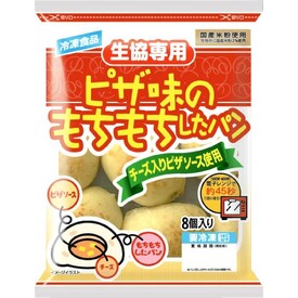 • モッツァレラチーズを使用したピザソース入りのパンです。生地には一部、国産米粉を使用し、もちもちとした食感に仕上げました。パルメザンチーズをトッピングしています。生協専用商品。直径約5.5cm。