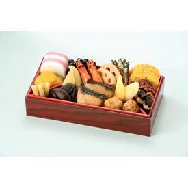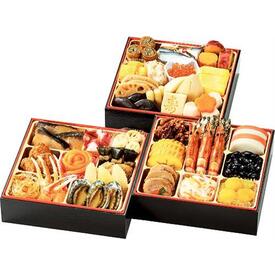• 【壱の重】くるみ砂糖がけ・金ごま田作り・紅白かまぼこ・伊達巻・有頭海老・丹波篠山産黒豆・鶏肉二色巻・ゆず入り生酢・なると金時栗きんとん【弐の重】長崎県産ぶりの照焼・酢だこ・手まり湯葉・名古屋コーチンの肉団子・サーモントラウトローズ・昆布巻・たらこ煮・流星くらげ・本ズワイ蟹爪幽庵・味付数の子・蝦夷あわび煮【参の重】穴子八幡巻・ままかり黒酢漬・さつまいも甘煮・いか雲丹風味・カナダホッキ貝サラダ・味付いくら・厚焼玉子・れんこん煮・しいたけ煮・たたき牛蒡・たけのこ煮・寿高野煮・六角里芋煮・花形人参