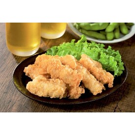 • いか(ペルー又はチリ産)を使い、食べやすい大きさの短冊切りにして唐揚げにしました。しょうがとにんにくが香るしょうゆ味です。最後まで美味しくお召しあがりいただけるよう塩味を抑えました。いかに切れ目を入れることで、いか本来の歯ごたえを楽しめます。