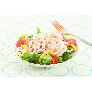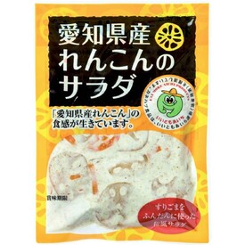 • 愛知県産れんこんを使用。人参入り。れんこんの食感をいかし、すりごまをふんだんに使った和風サラダです。買い置きのおかずとして使いやすい小さな袋包装の商品です。