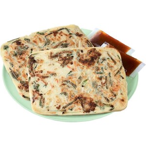 休日の昼ごはんなど、パッとレンジでできるので重宝しています。簡単だけどモチモチで美味しいです。チヂミが四角いので丸いお皿にのせると浮きますが、ちゃんと加熱されます。 タレもついてて、これだけで完成できるのがありがたいです。お好み焼きより厚みがなく冷凍庫の場所を取らないので、常にストックしています。