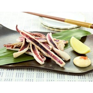• するめいか(国産)を使用。薄い塩味で軽く干しあげ、甘みを引き出し、使いやすいようにカットしました。そのまま焼いて、生姜醤油、マヨネーズ等をつけてお召しあがりください。また、フライ、天ぷら、バター焼き、炒め物等でもご利用いただけます。
