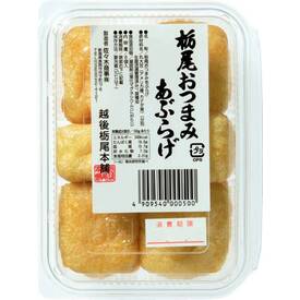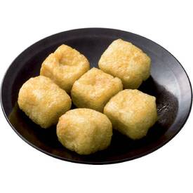 アメリカ・カナダ産丸大豆を使用。新潟県栃尾地区で江戸時代より続く「栃尾あぶらげ」の製法をそのままに、ひと口サイズに仕上げました。皮の香ばしい香りが口の中で華やかに広がります。揚げ油は菜種油を使用しました。中身は空気の層が多いふっくらジューシー仕上げで、ふくよかな味わいが特徴です。にがり使用。