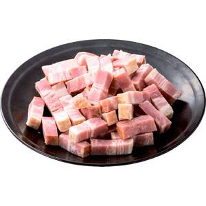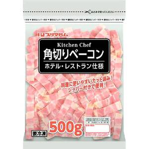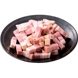 豚ばら肉を使用。料理に便利なカット済み冷凍角切りベーコンです。リン酸塩・発色剤を使用。
