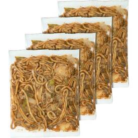 中太麺に豚肉とキャベツ、たまねぎの具材をあわせ、中濃ソース等を絡めて焼きあげた焼そばです。レンジ又は湯煎で加熱後、よく混ぜてからお召しあがりください。